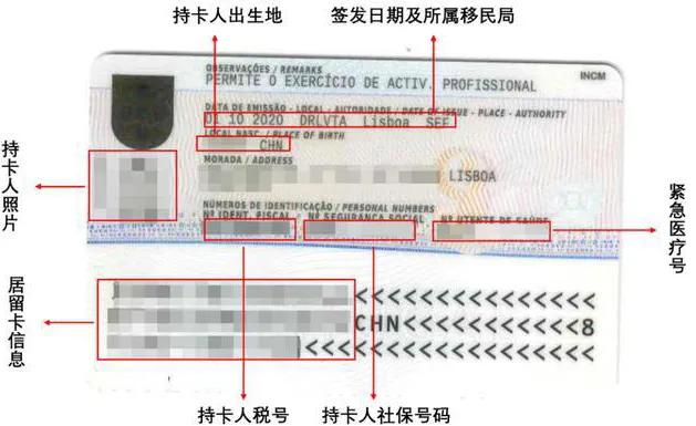 居留卡的签发日期、持卡人递交的葡萄牙SEF地点信息、出生地点和税号信息在背面显示。