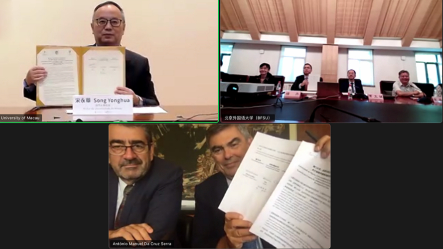【葡新报讯】近日,澳门大学、北京外国语大学和里斯本大学三方代表在线签署协议,正式组建中国葡语教育高校联盟,致力提升中国在葡语教育领域的合作层次和水平。
