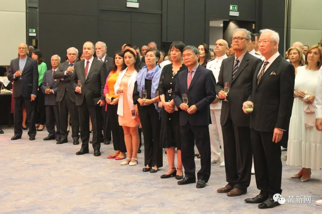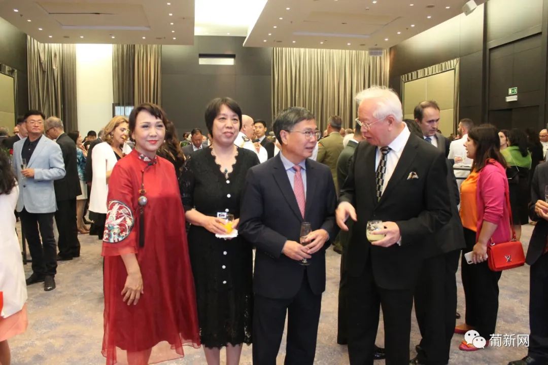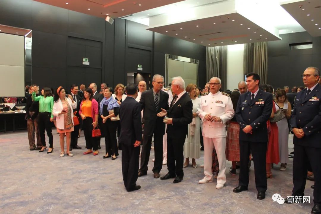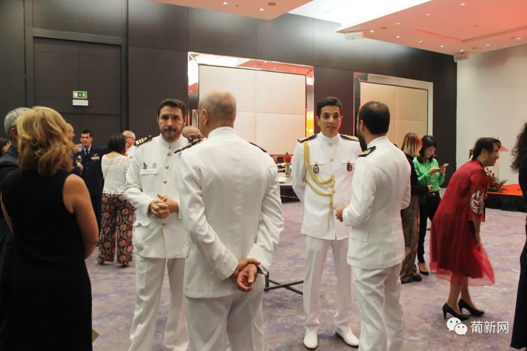 本次招待会由中国驻葡萄牙国防武官王睿大校及使馆经商处顾启凡共同主持,应邀出席庆典的还有中国驻葡萄牙大使赵本堂、中国驻葡萄牙大使馆陈晓玲公参、领侨处主任夏晚晴等使馆领导、旅葡华人华侨、中资机构、留学生团体以及中葡双方军事要员等百余人。