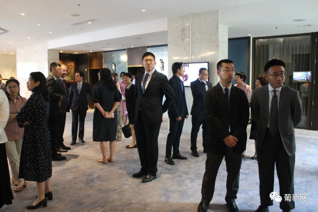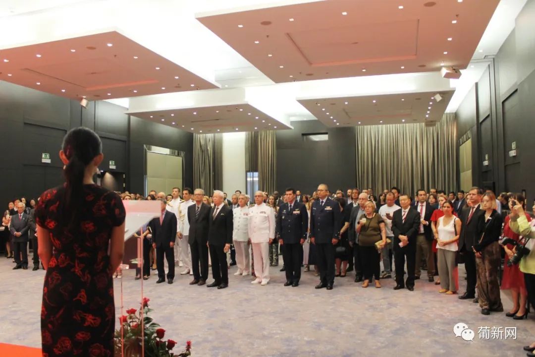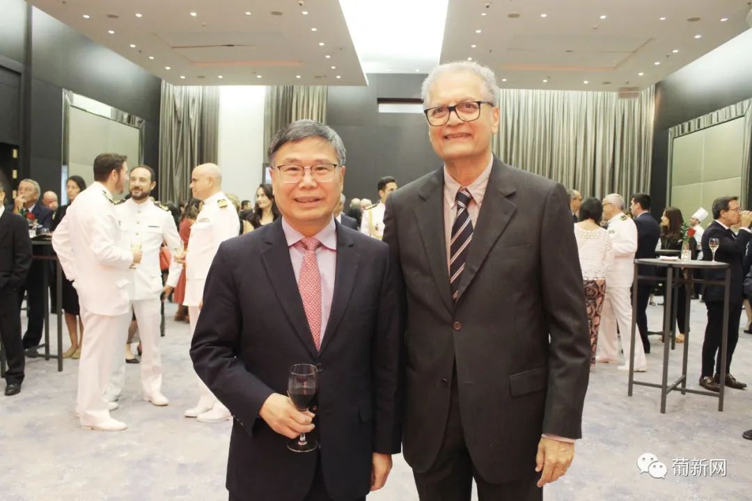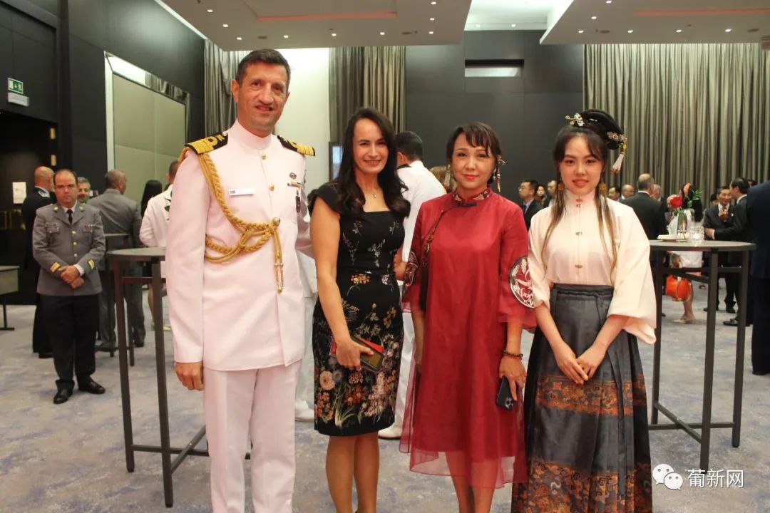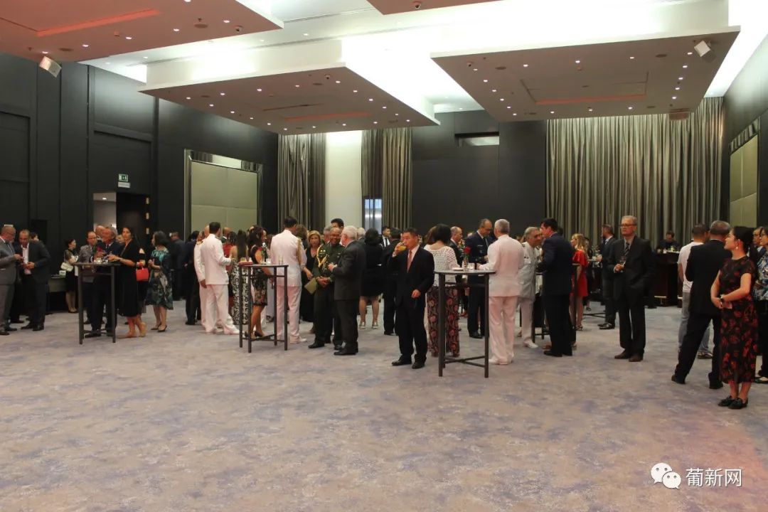 本次招待会由中国驻葡萄牙国防武官王睿大校及使馆经商处顾启凡共同主持,应邀出席庆典的还有中国驻葡萄牙大使赵本堂、中国驻葡萄牙大使馆陈晓玲公参、领侨处主任夏晚晴等使馆领导、旅葡华人华侨、中资机构、留学生团体以及中葡双方军事要员等百余人。