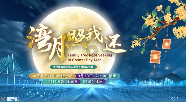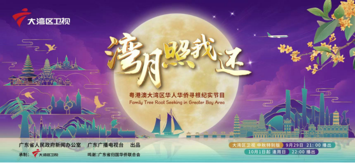 海上生明月,天涯共此时。对于全球华人华侨而言,中秋节具有特殊的文化意义,有着一种融于血脉的共识与共情。9月29日中秋节当晚9点,由广东省人民政府新闻办公室和广东广播电视台联合出品的粤港澳大湾区华人华侨寻根纪实节目《湾月照我还》,将在大湾区卫视首播!节目以华人华侨的视角,展示真实、立体、全面的中国,和开放、包容、创新的大湾区。