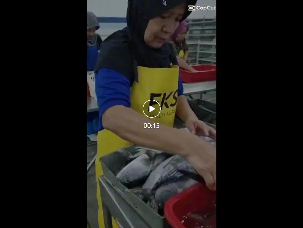 点击文字看小视屏:FKS集团外南梦鲜鱼加工厂繁忙的生产车间。