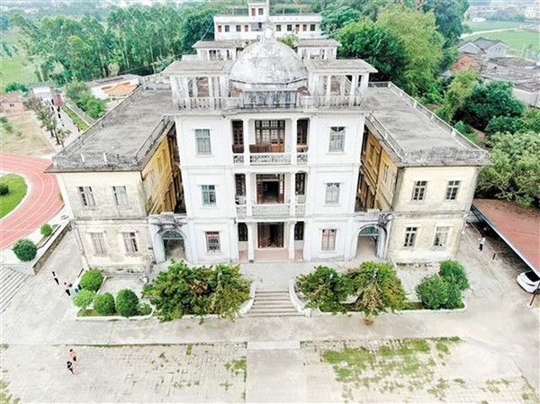旧址位于青山脚下,建筑风格集传统园林和西方建筑风格于一体,有着浓郁的侨乡风采。“这几棵鸡蛋花树、木棉树几乎与旧址同龄,见证了许多人的成长。”在这栋校舍旁,梁碧如指着几棵树介绍道。