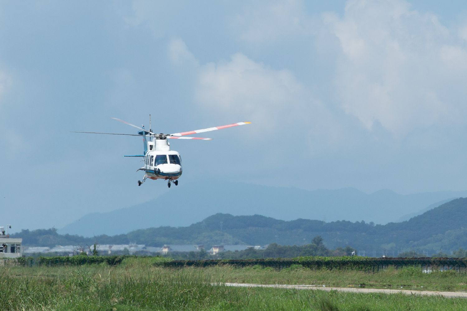资料图为2024年9月29日,海南三亚至广东湛江的省际跨海直升机航线首飞,图为直升机从三亚天涯直升机场起飞。(图片来源:南航通用航空股份有限公司供图)