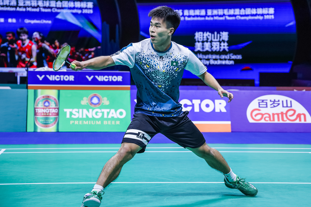 2月12日,中国澳门队选手裴鹏锋出战2025亚洲羽毛球混合团体锦标赛男单比赛。(图片来源:亚团赛组委会供图)