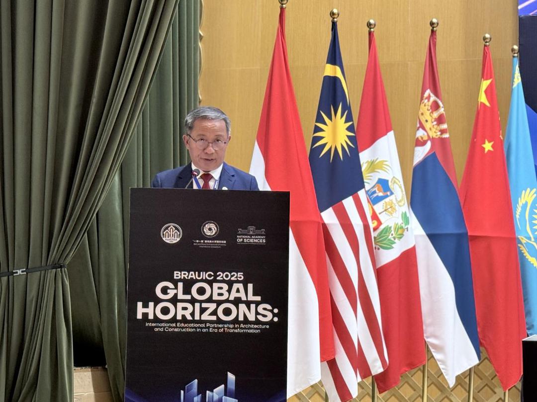 联盟主席、北京建筑大学校长张大玉代表联盟主席单位向参加会议及活动的校长和嘉宾表示热烈欢迎,向哈萨克斯坦国际教育集团为大会组织所付出的辛勤工作表示感谢。他指出,联盟成立九年来,始终秉持“自愿平等、开放共享、合作共赢、创新发展”的原则,汇聚全球建筑类高校与企业力量,构建了多层次、多领域的国际合作网络,为“一带一路”高质量发展注入教育与科技动力。他表示,过去一年,联盟的“朋友圈”持续扩大,新增十家成员单位;人才培养成效显著,开展了大量校际交流与合作;协同创新成果丰硕,特别是在推动文物科技保护与文化传播等方面取得实质性进展,为促进多国文明交流互鉴、共建共享“一带一路”提供了新的创新模式和合作范式。他强调,面对绿色低碳、数字化转型等全球共识,联盟将继续深化文明互鉴,完善合作机制,努力打造“一带一路”教育与科技合作的示范平台,为构建人类命运共同体贡献专业力量。
