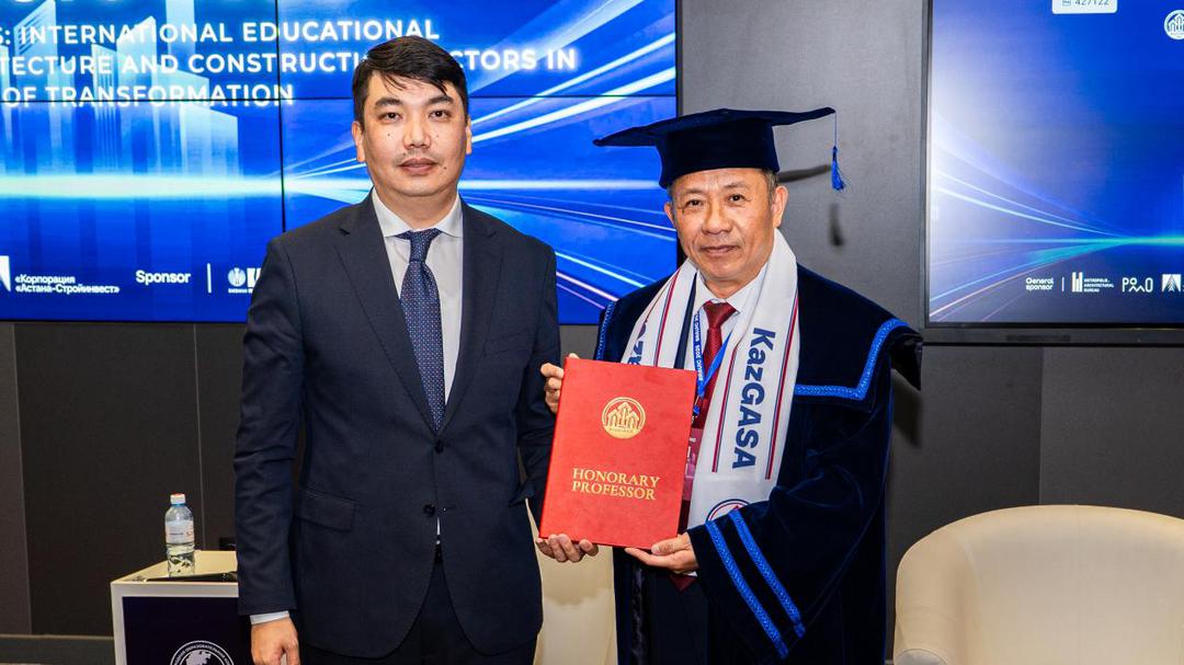 为表彰张大玉对“一带一路”建筑类大学国际联盟发展的长期贡献,特别是在促成并深化北京建筑大学与哈萨克斯坦国际教育集团战略伙伴关系中的关键作用,哈方举行仪式,授予张大玉校长哈萨克斯坦建筑与土木工程学院“荣誉教授”称号。