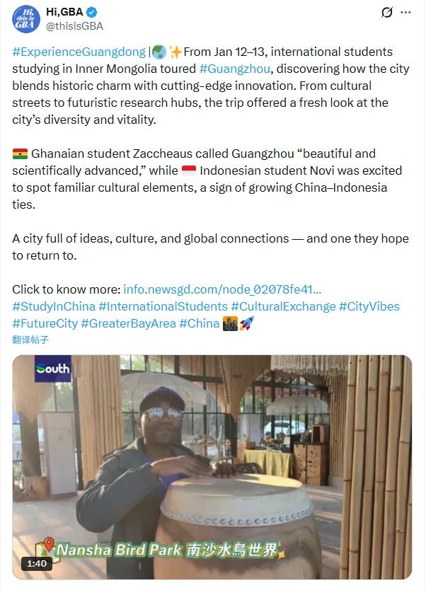 参观后,不少留学生向记者表示,从内蒙古的广袤草原到南沙的创新高地,中国多元的发展风采令他们赞叹不已。此行,他们不仅交到新朋友收获了难忘的友谊,更见证了南沙在高等教育、低空经济和生态保护方面的成效,获益良多,终身难忘。