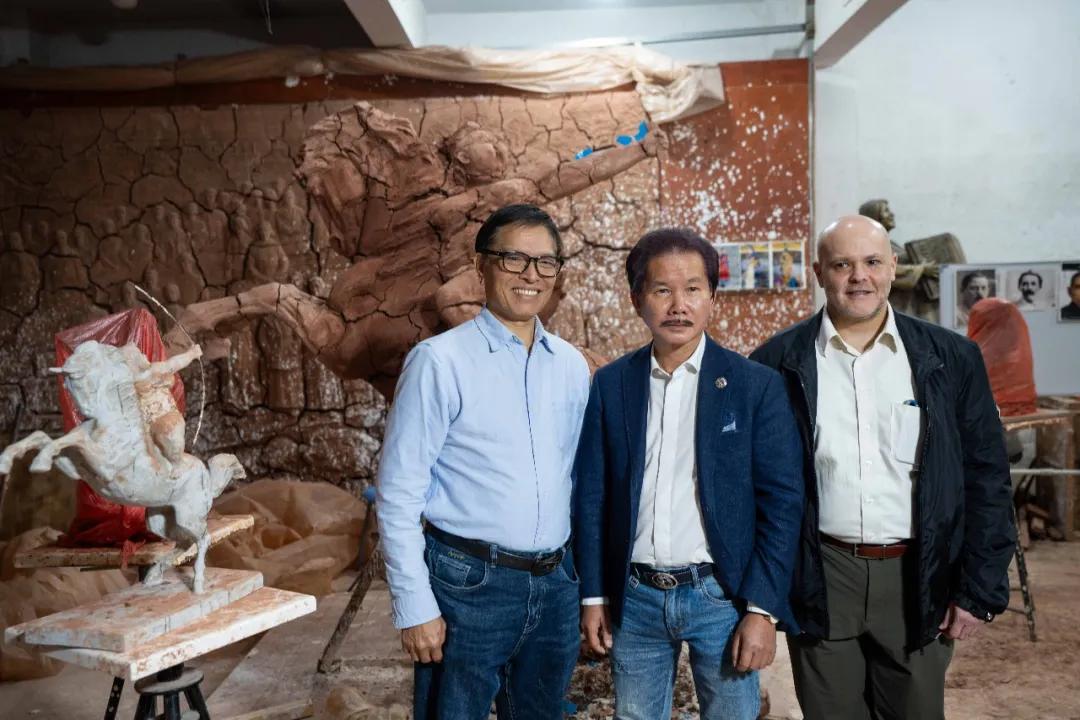 丹尼尔·多明格斯代总领事对许鸿飞作品展现出的艺术张力和跨文化感染力表示高度赞赏,双方就雕塑艺术如何跨越语言障碍、促进人文交流进行了深入探讨。