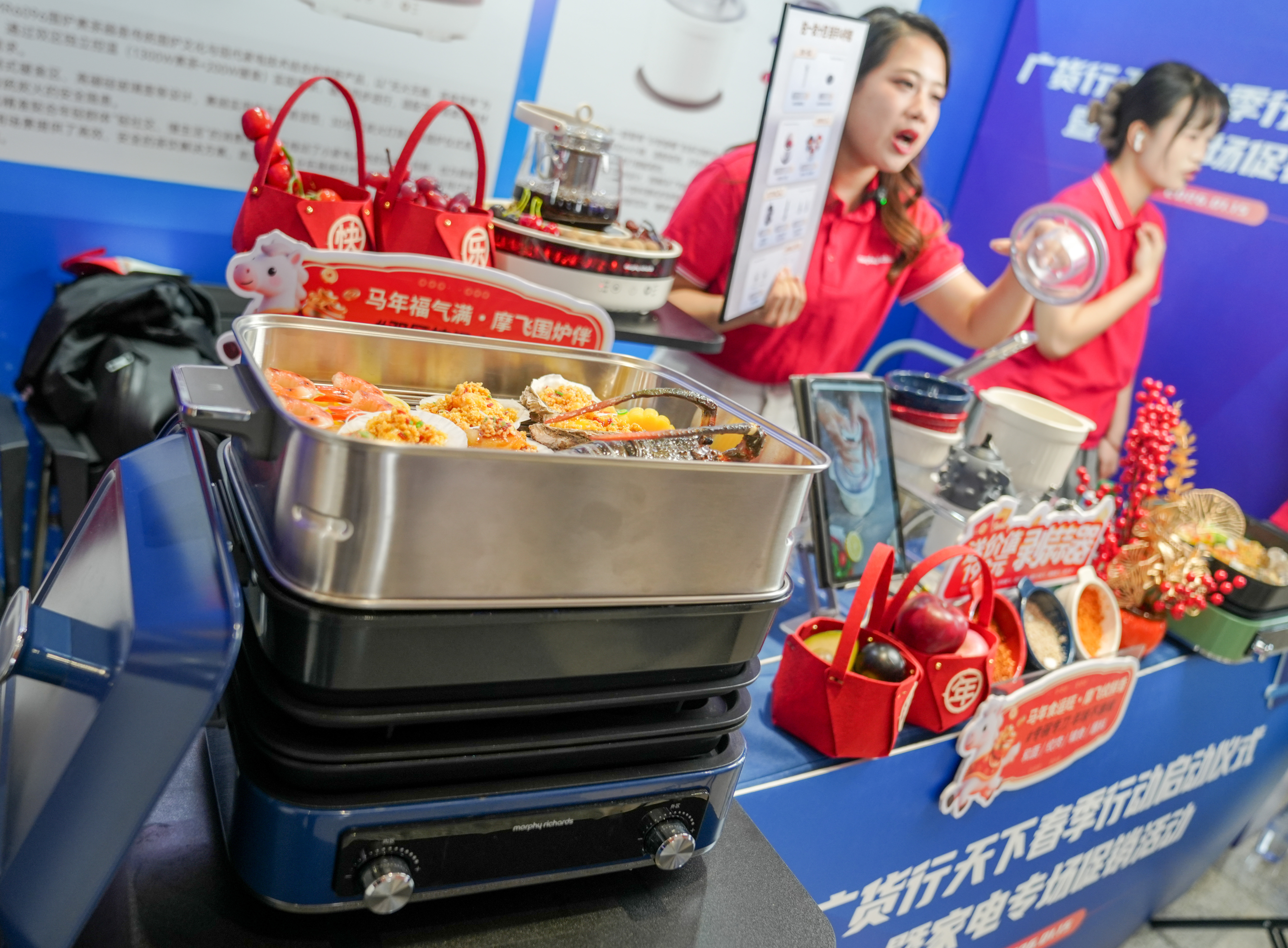 美的低糖电饭煲让控糖饮食更轻松;格兰仕的微波炉能蒸、能烤还能空气炸,一台顶好几台;威力洗衣机几十年如一日耐用可靠,连用了40多年的老机型都成了网红……首场家电专场促销活动现场,一件件“广货”凭借过硬品质、实用体验和合理价格赢得消费者青睐,正掀起一轮销售热潮。