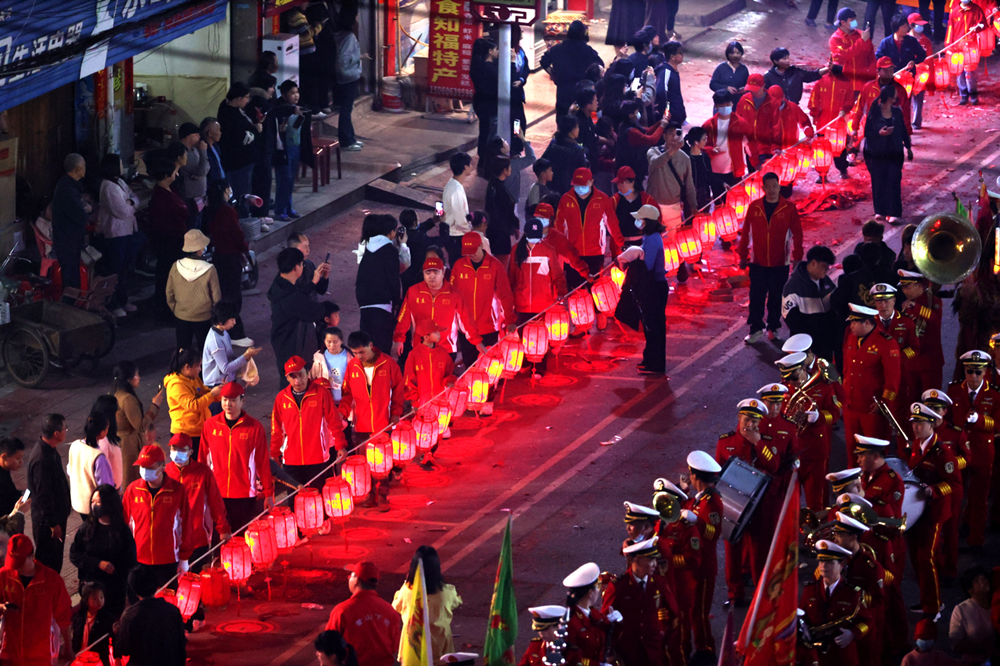 当晚,浩浩荡荡的拔拔灯巡游队伍沿镇区主要街巷行进约7公里,历时约5个小时,一直持续至深夜。