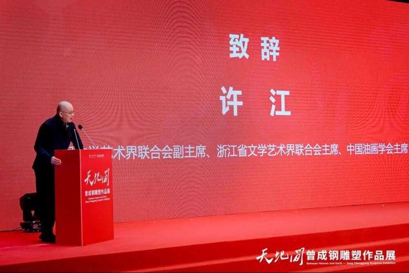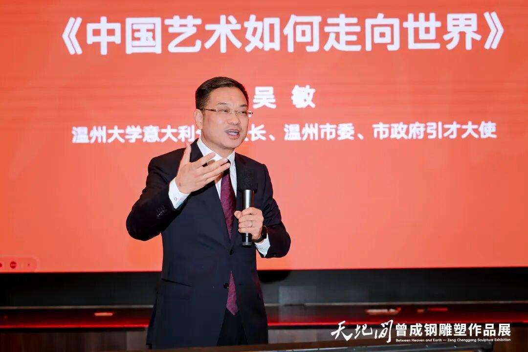 本报讯(记者 周瑶)1月22日,“天地间・曾成钢雕塑作品展”在上海美术馆(中华艺术宫)开幕。温州大学意大利分校校长、温州市委、市政府引才大使吴敏受邀以“一带一路”丝路学院系列专题——《中国艺术如何走向世界》发表演讲。来自文化和旅游部、上海市人民政府、中国文学艺术界联合会、清华大学、中国美术家协会等单位的相关负责同志出席开幕式。全国各大艺术院校领导、艺术机构专家、国内外雕塑界人士及社会各界嘉宾共 400 余人参加开幕式。