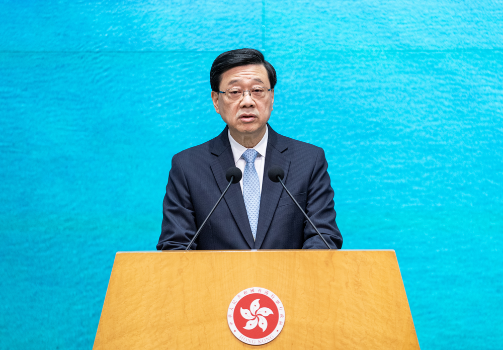3月17日,香港特区行政长官李家超出席行政会议前在特区政府总部会见记者。(图片来源:中新社)