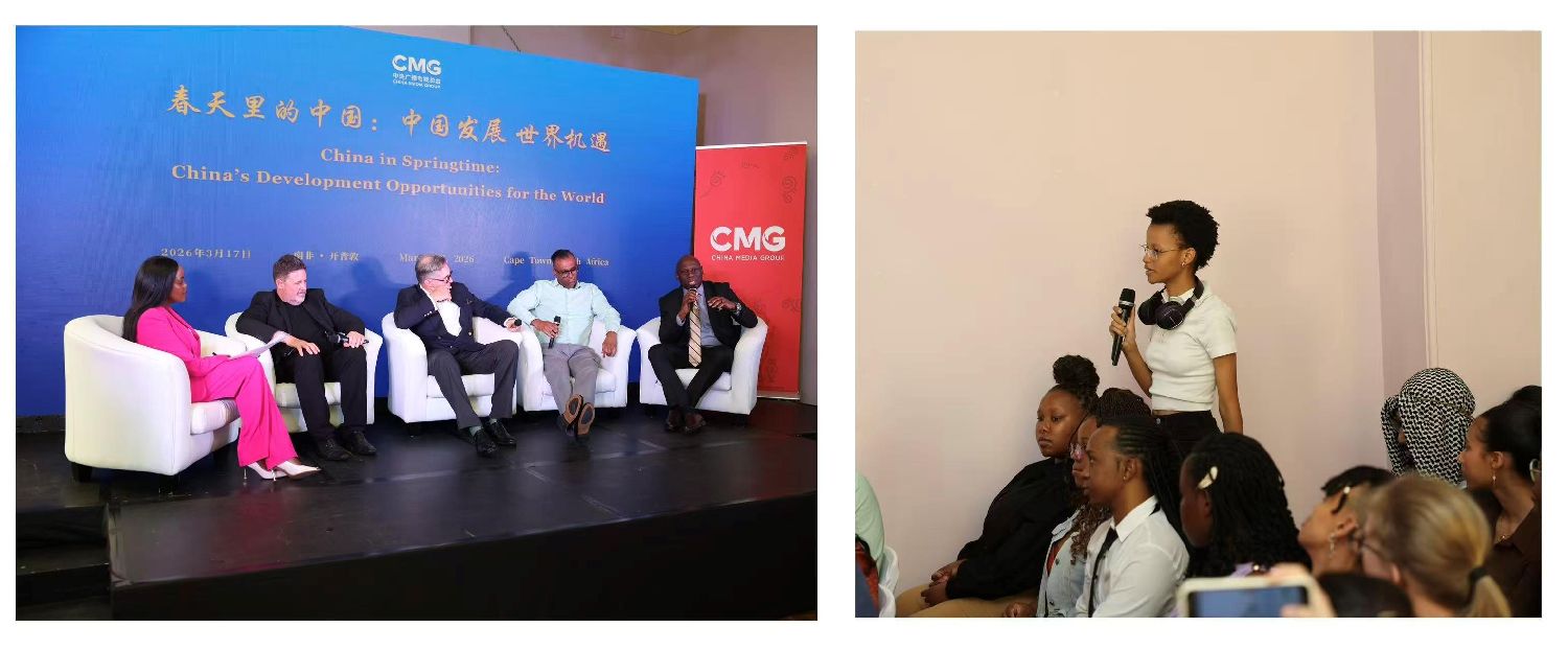 活动上,来自南非学界、商界、教育界等多位与会嘉宾围绕“科技赋能现代化:中非创新合作的新动能”“文明互鉴与全球传播:中非媒体合作的新空间”等议题展开深入探讨。嘉宾表示,非中合作正迈向更加注重创新驱动与内容共创的新阶段。人工智能、新能源、数字经济等新兴领域发展日新月异,持续为非中现代化进程注入新动能。作为促进文明互鉴、讲好非中友好故事的桥梁,双方媒体应进一步拓展多元合作。来自南非开普敦大学、西开普大学和斯坦陵布什大学的学生代表就人工智能发展、数字鸿沟弥合以及青年参与国际传播等主题踊跃提问,与嘉宾交流互动。