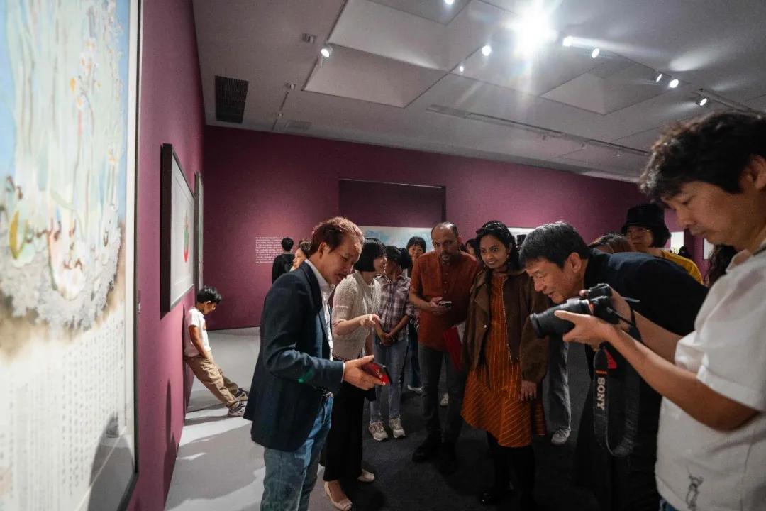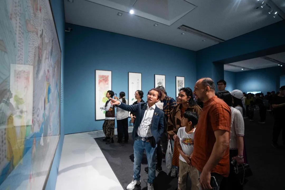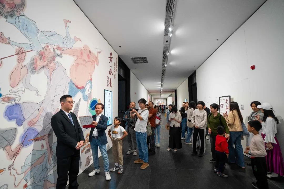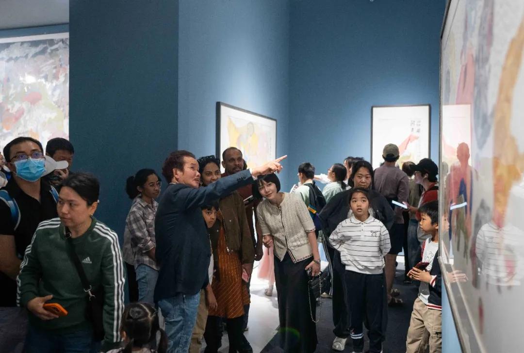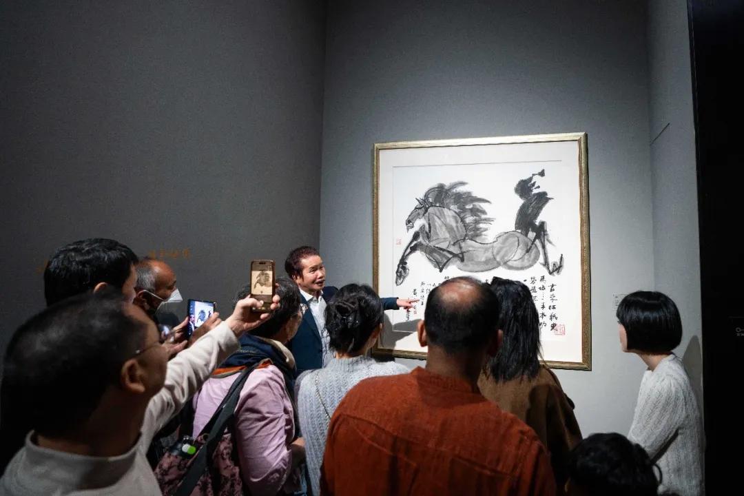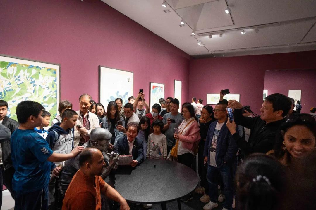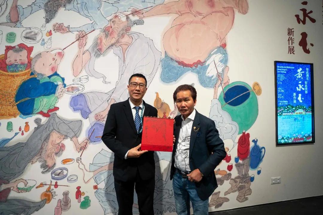 步入展厅,浓郁的艺术气息扑面而来。许鸿飞以其对黄永玉艺术的深刻理解,与总领事及观众穿行于一幅幅巨制之间,生动地分享了画作背后的故事,追忆与黄老往昔交往的点滴,解读其作品中蕴含的自由心境、幽默哲思以及对生命的炽热礼赞。