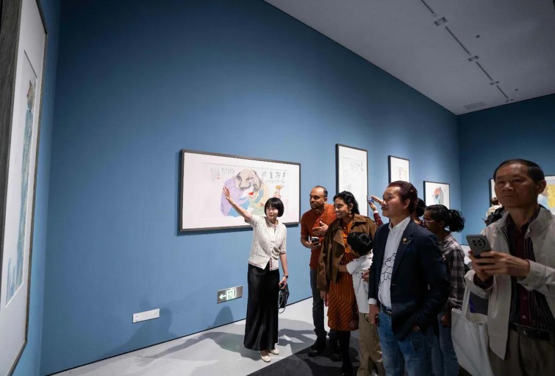 近日,在“如此漫长·如此浓郁——黄永玉新作展”于广东美术馆新馆展出即将收官之际,许鸿飞再次来到展厅,为专程前来的斯里兰卡驻广州总领事拉辛卡·迪利尼·达穆拉格一行及现场观众进行了一场别开生面的导览。