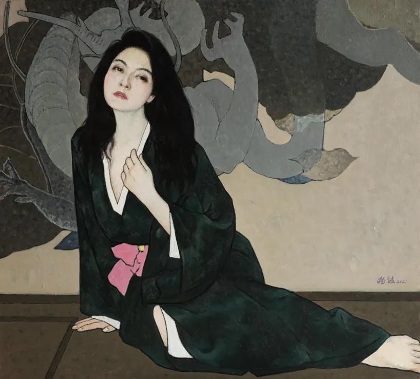 靳尚谊对油画的追求远不止于此。他家中客厅里挂着郑板桥的水墨画,收藏着黄宾虹的《抉微画集》,他持续从中国传统绘画中吸收养分。山西永乐宫壁画的恢宏构图、敦煌艺术的流动线条,以及因岁月沉淀而愈显典雅的色彩体系,均为其油画语言注入了东方美学基因。