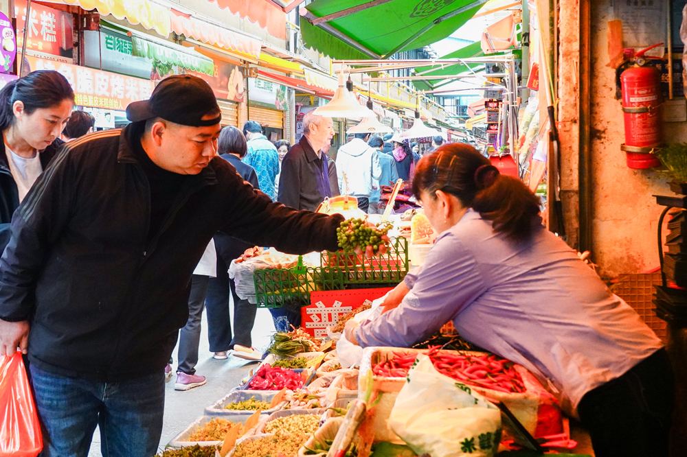 3月22日,食客在云南省昆明市篆新农贸市场选购春花野菜。(图片来源:中新社)