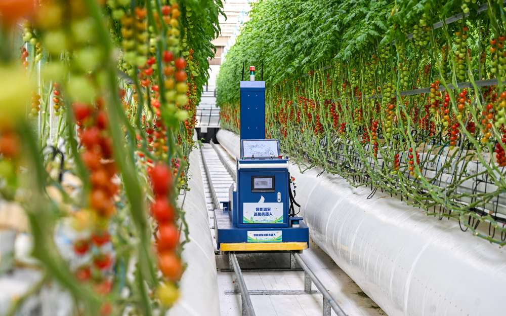 中新社报道,走进雄安高宇农业发展有限公司的农业园智能玻璃温室,入目是一片郁郁葱葱的“垂直森林”。无土栽培下,十几米的番茄藤蔓攀缘而上,红果缀枝;可升降草莓种植架随光照自动调位,最大化利用空间。