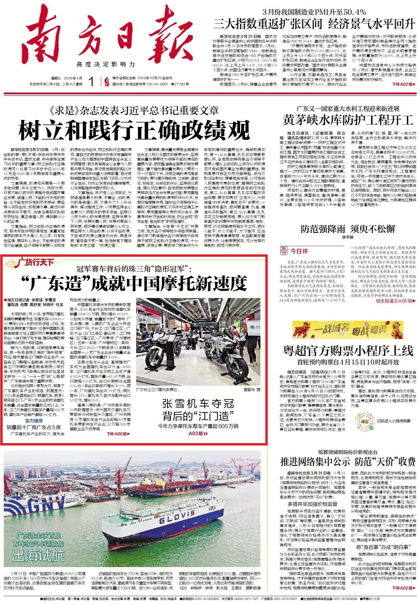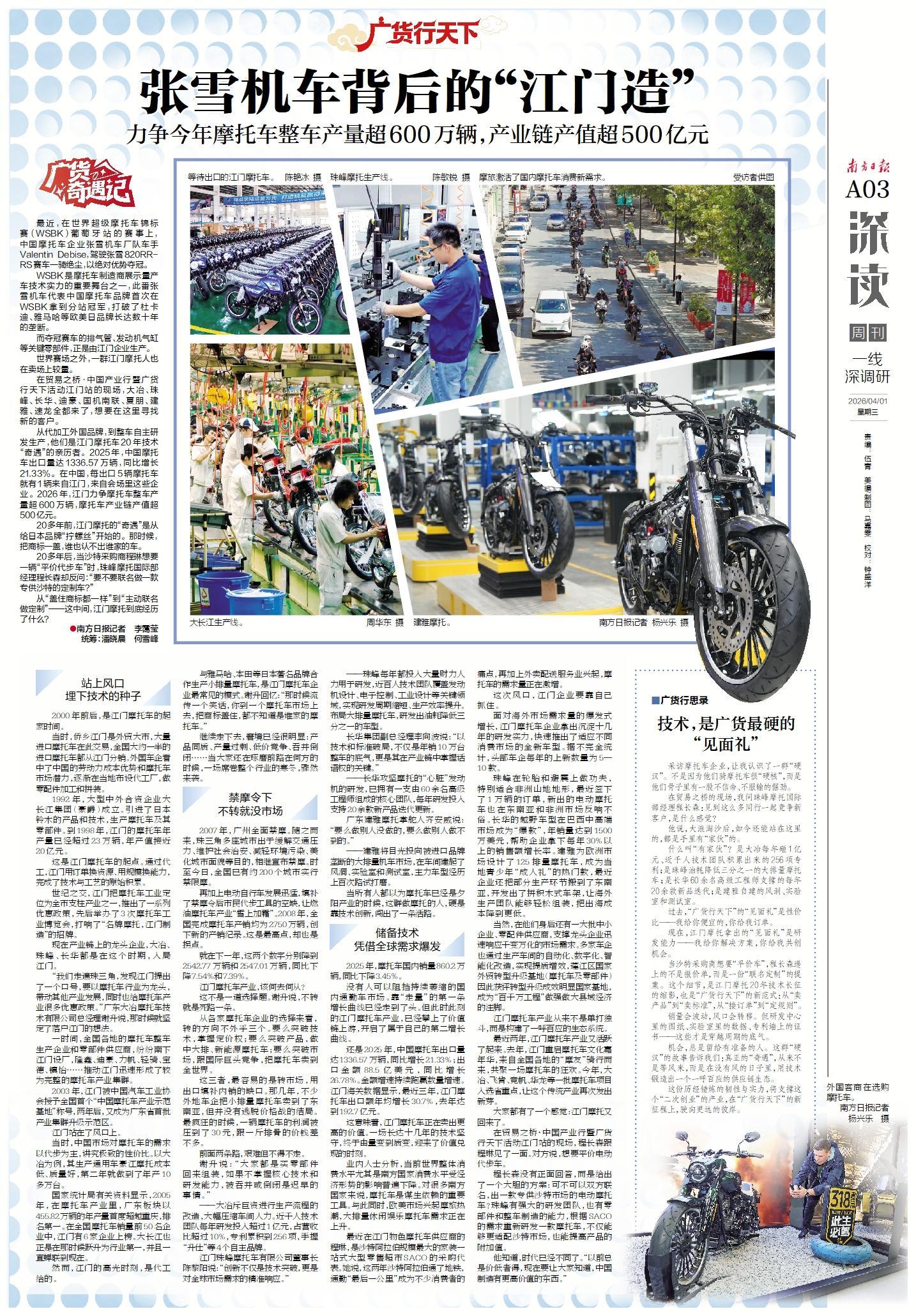南方日报头版|张雪机车夺冠背后的“江门造”